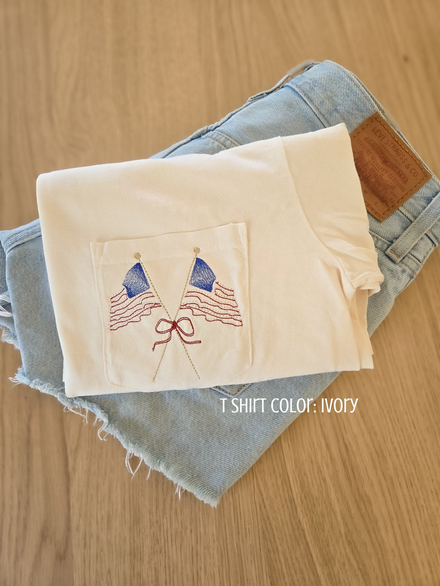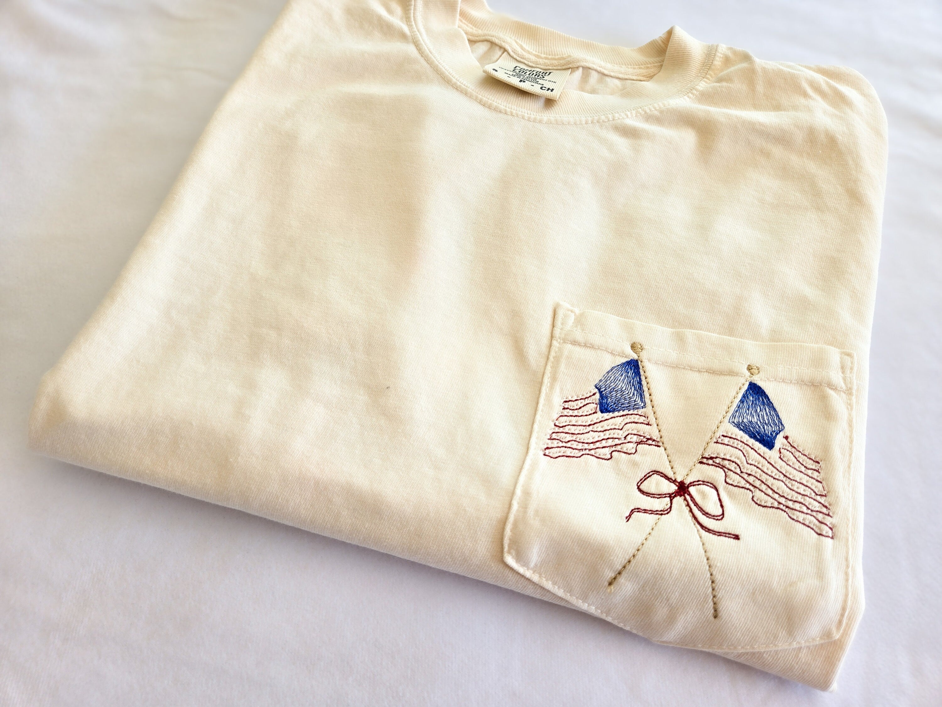 American Flag t-shirts made on Pocketed Comfort Colors tees.