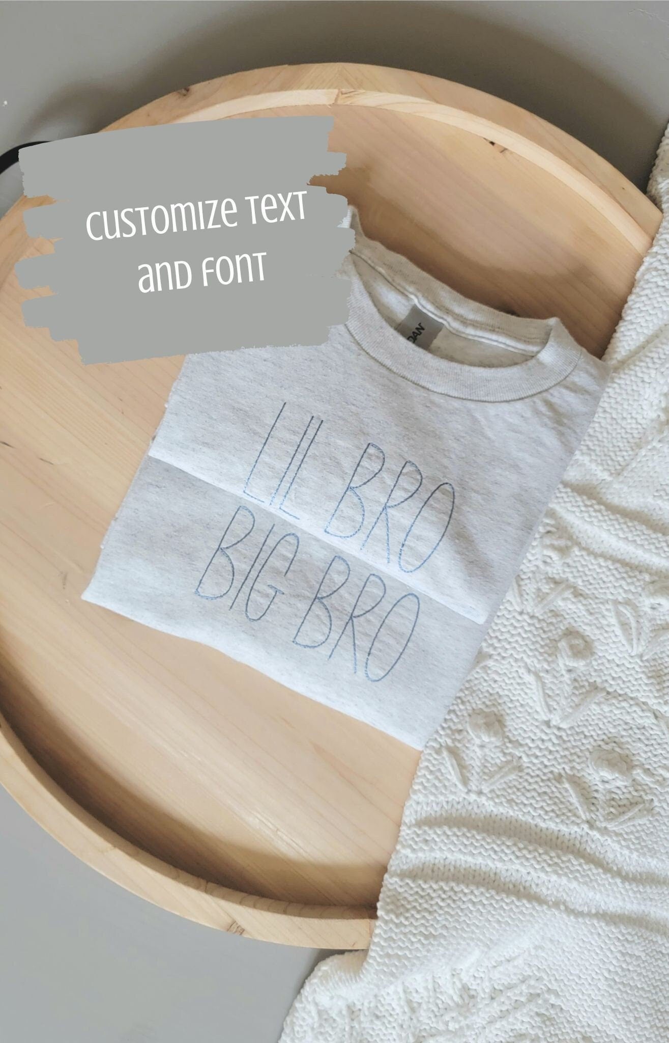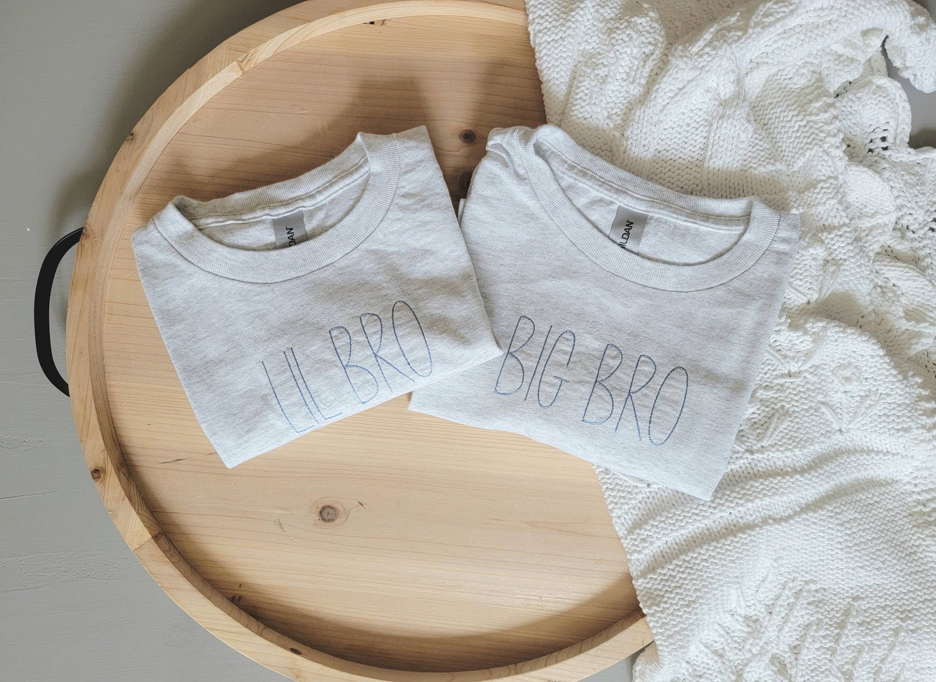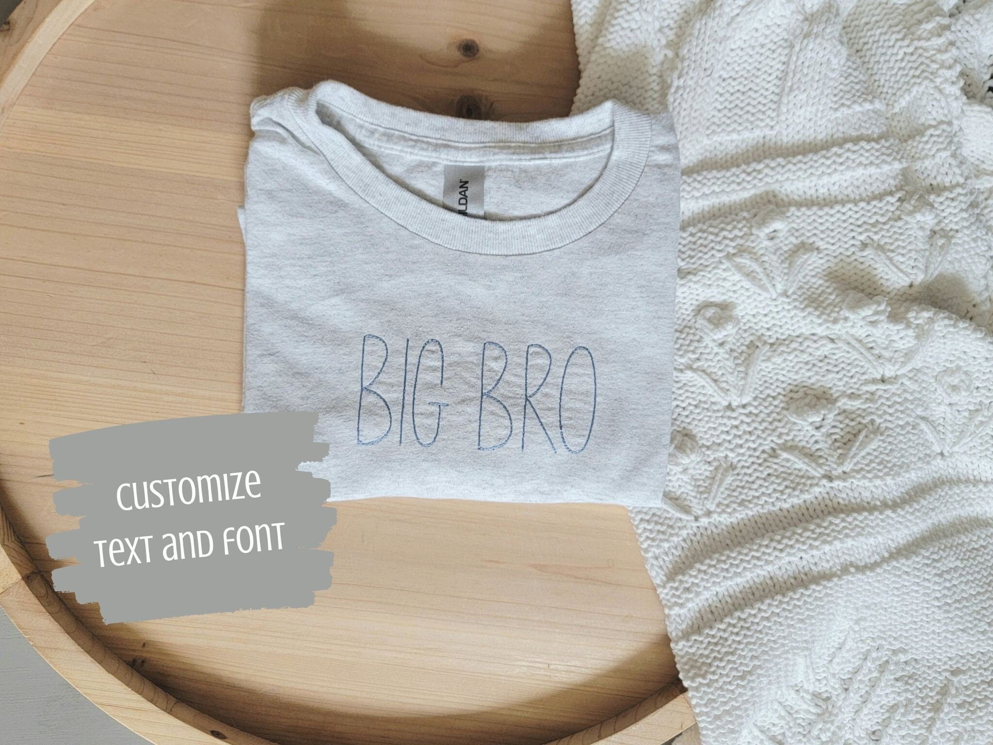 Sibling T-shirts. Customize with what you would like it to say. Big Brother, Big Sister, Big Bro, Big Sis. Choose from different font options, thread colors, and t-shirt colors.