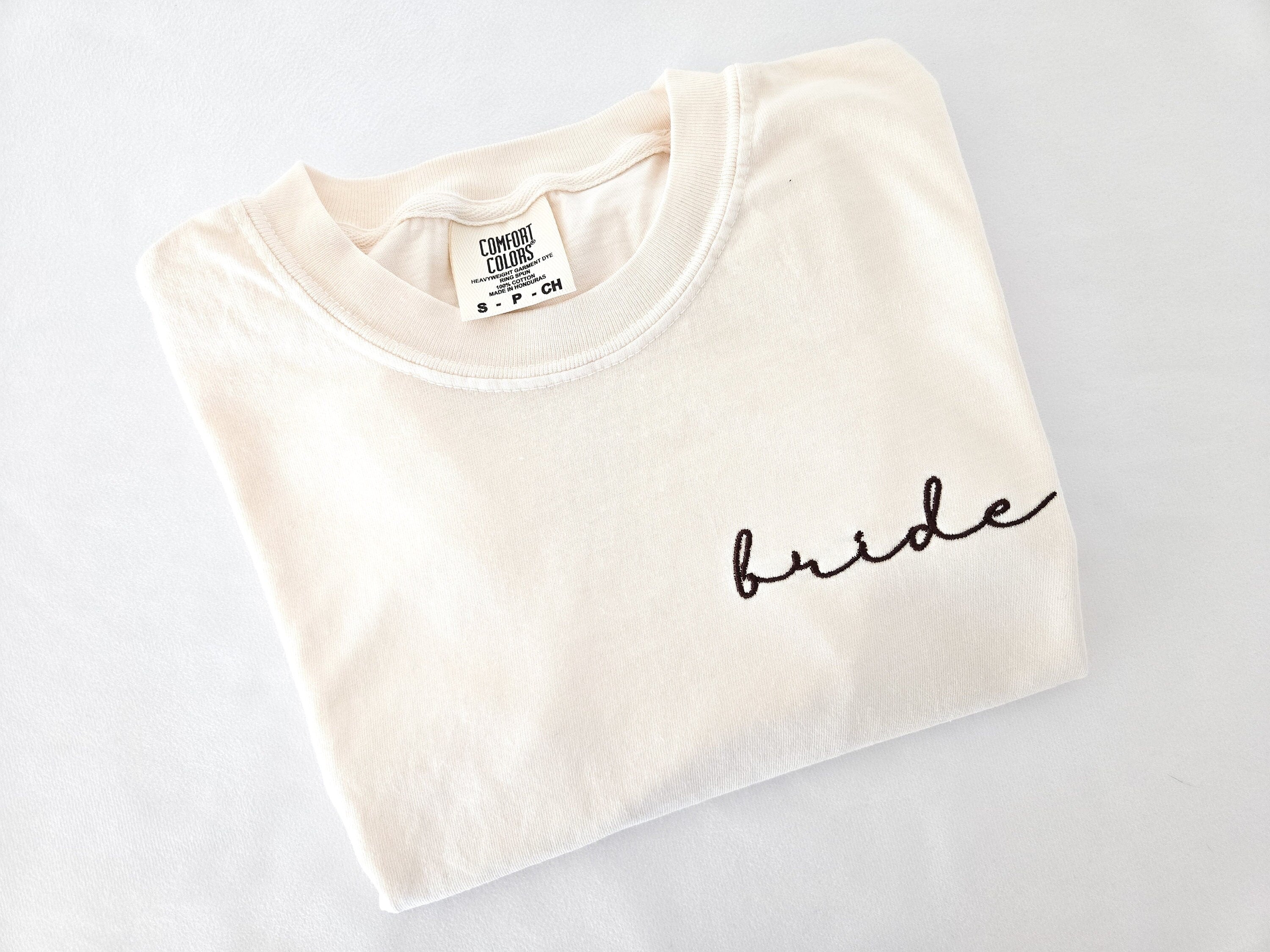 Simple bride t shirt made in the cursive mama font. Perfect for a soon to be bride or for the wedding day!