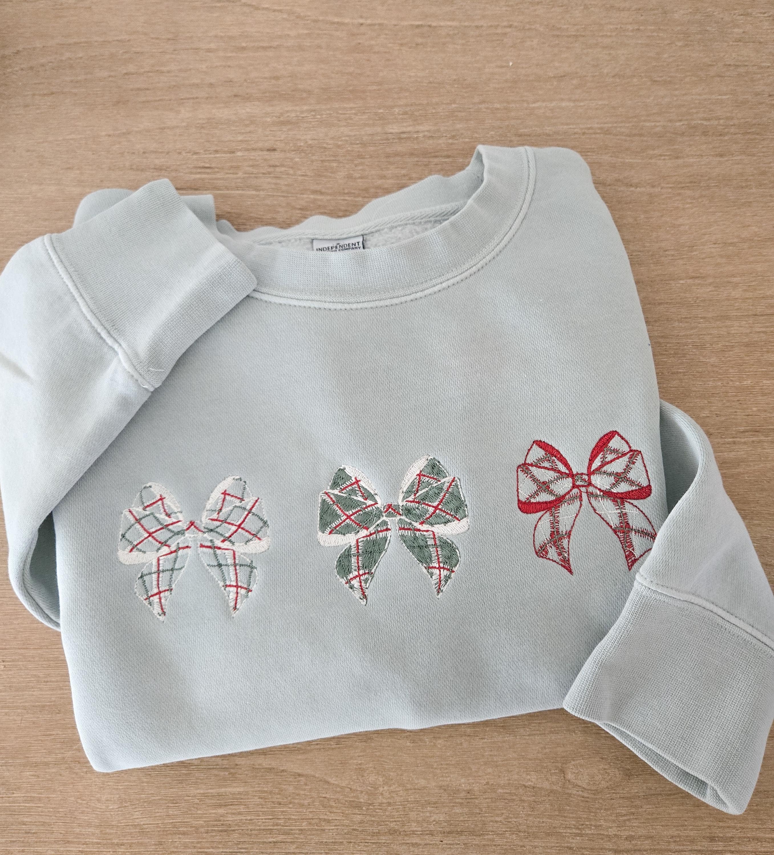 Cozy up in this trendy Christmas bow sweatshirt. Featuring 3 plaid bows made in beautiful reds and greens giving this a very warm Christmas feel. Perfect sweatshirt to wear for holiday dinners, family parties, or just because.