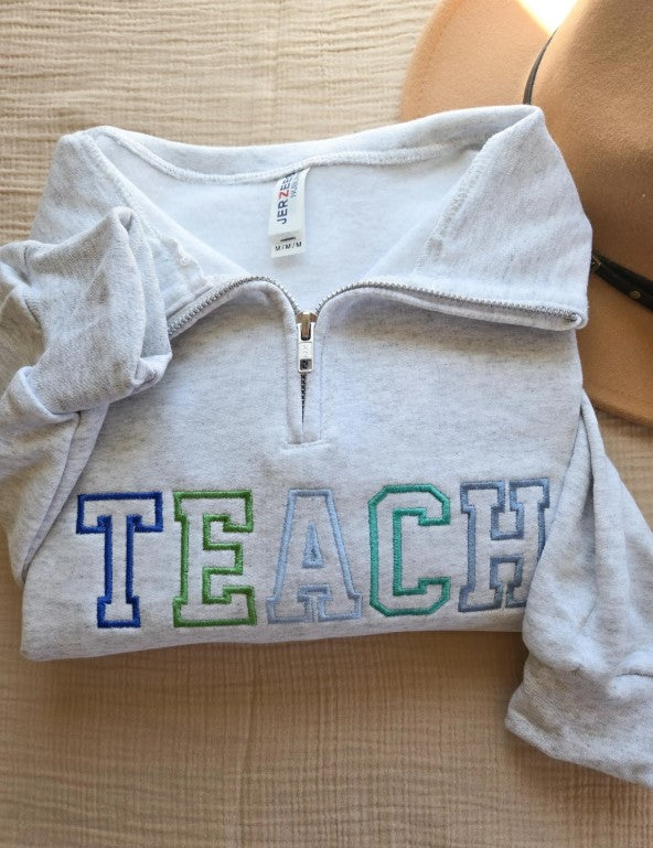 Colorful Varsity Teach Quarter Zip Sweatshirt