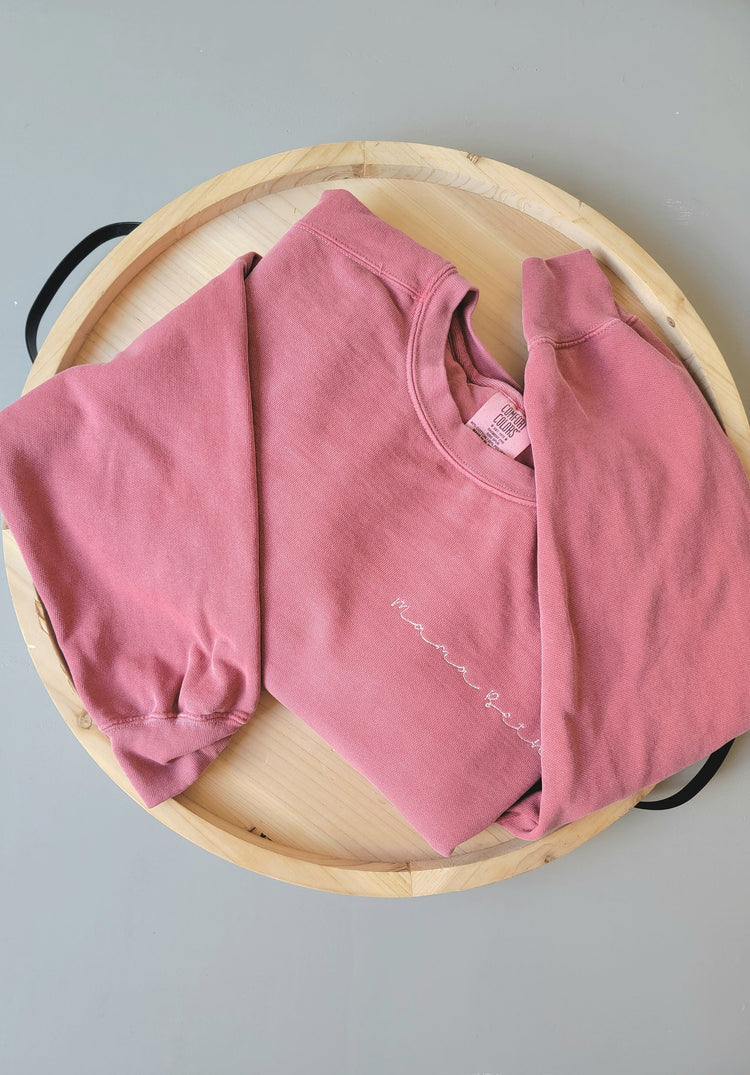 Custom Embroidered Fully customize these Comfort Colors sweatshirts with the name of your liking on the pocketed side.