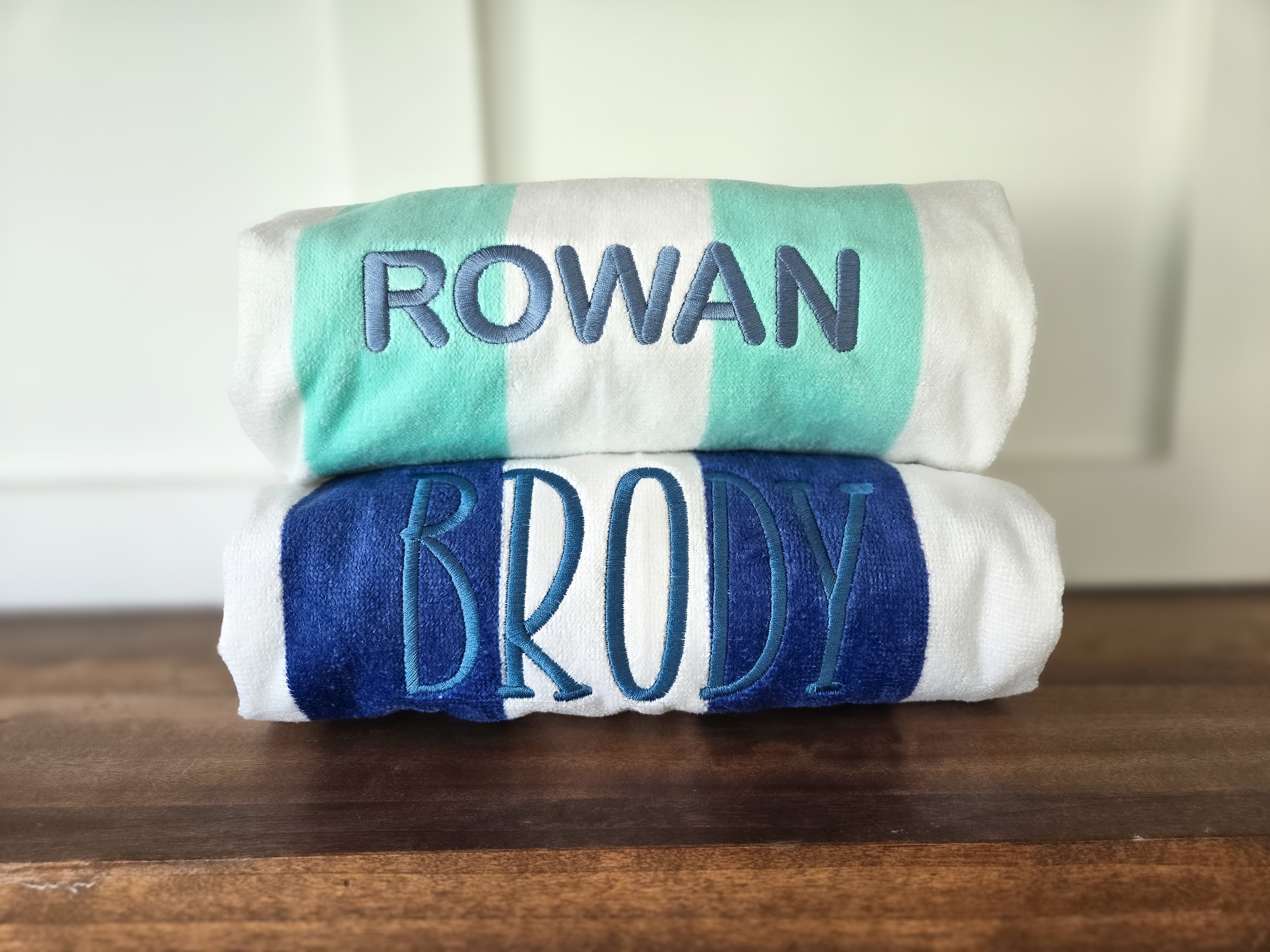 Sizing is 30" wide by 60" long. Embroidery will be positioned in the middle and a few inches from the bottom hem.