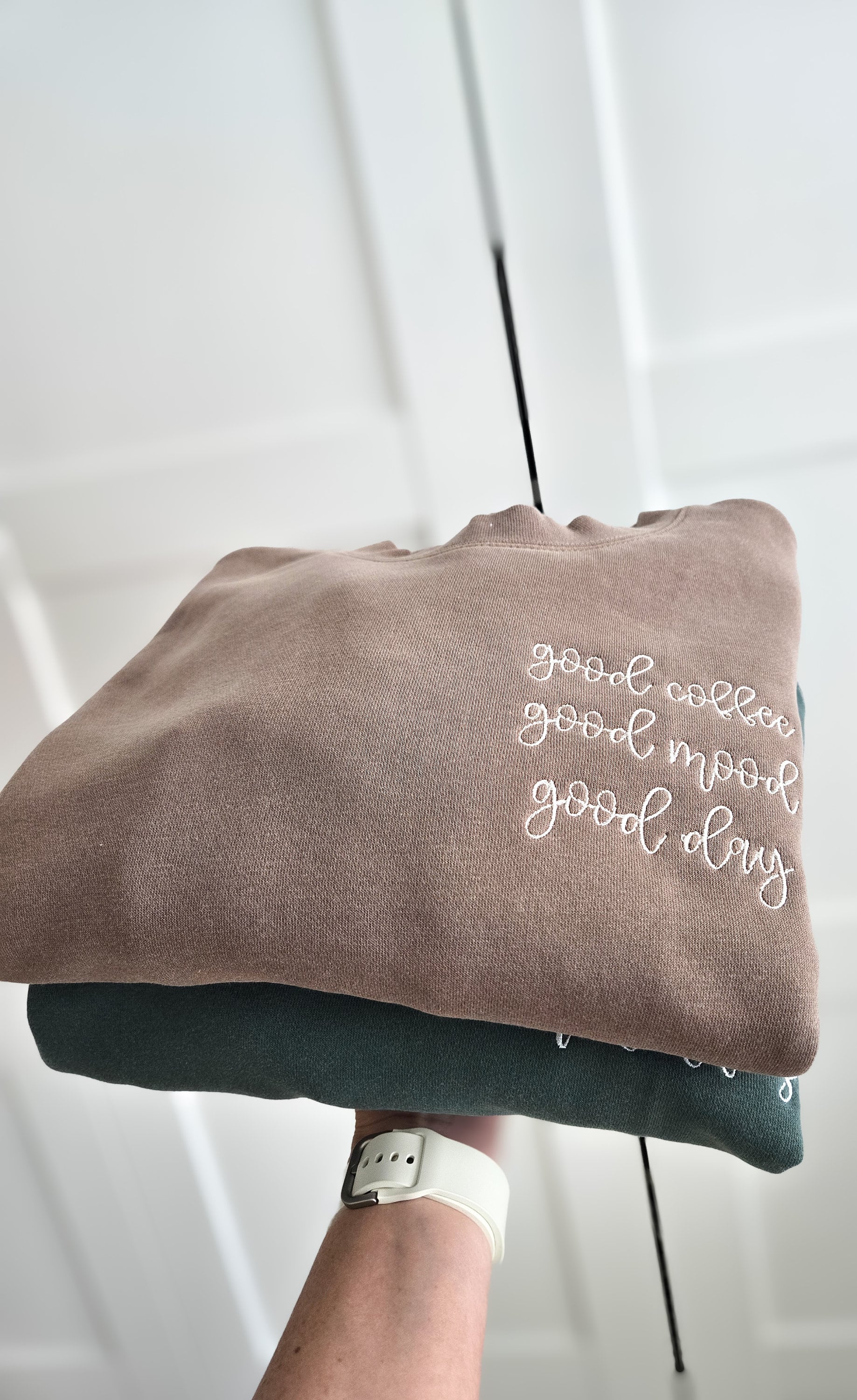 Independent Trading Co. Midweight sweatshirts. Made with the saying Good Coffee Good Mood Good Day, great for the Coffee lover!