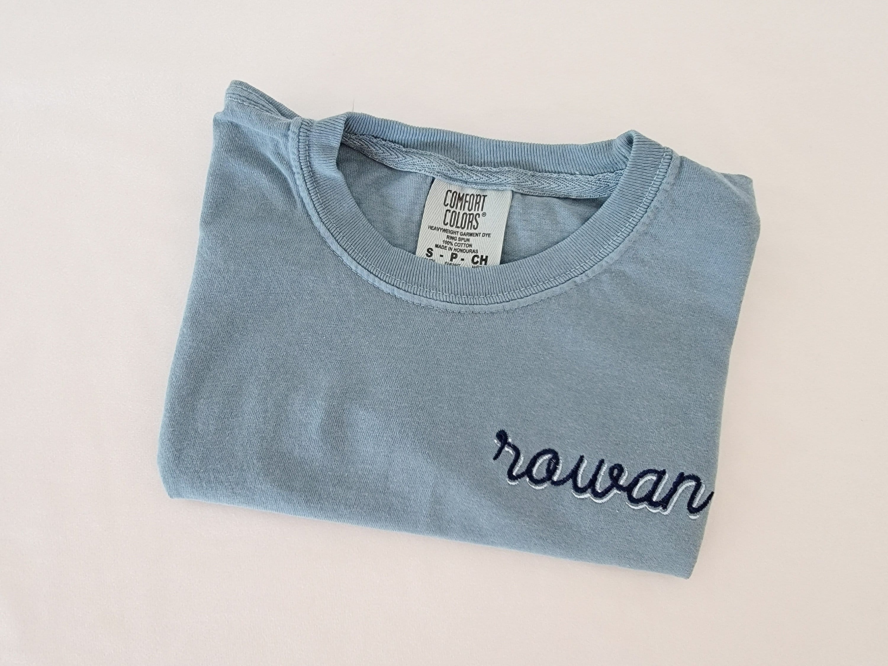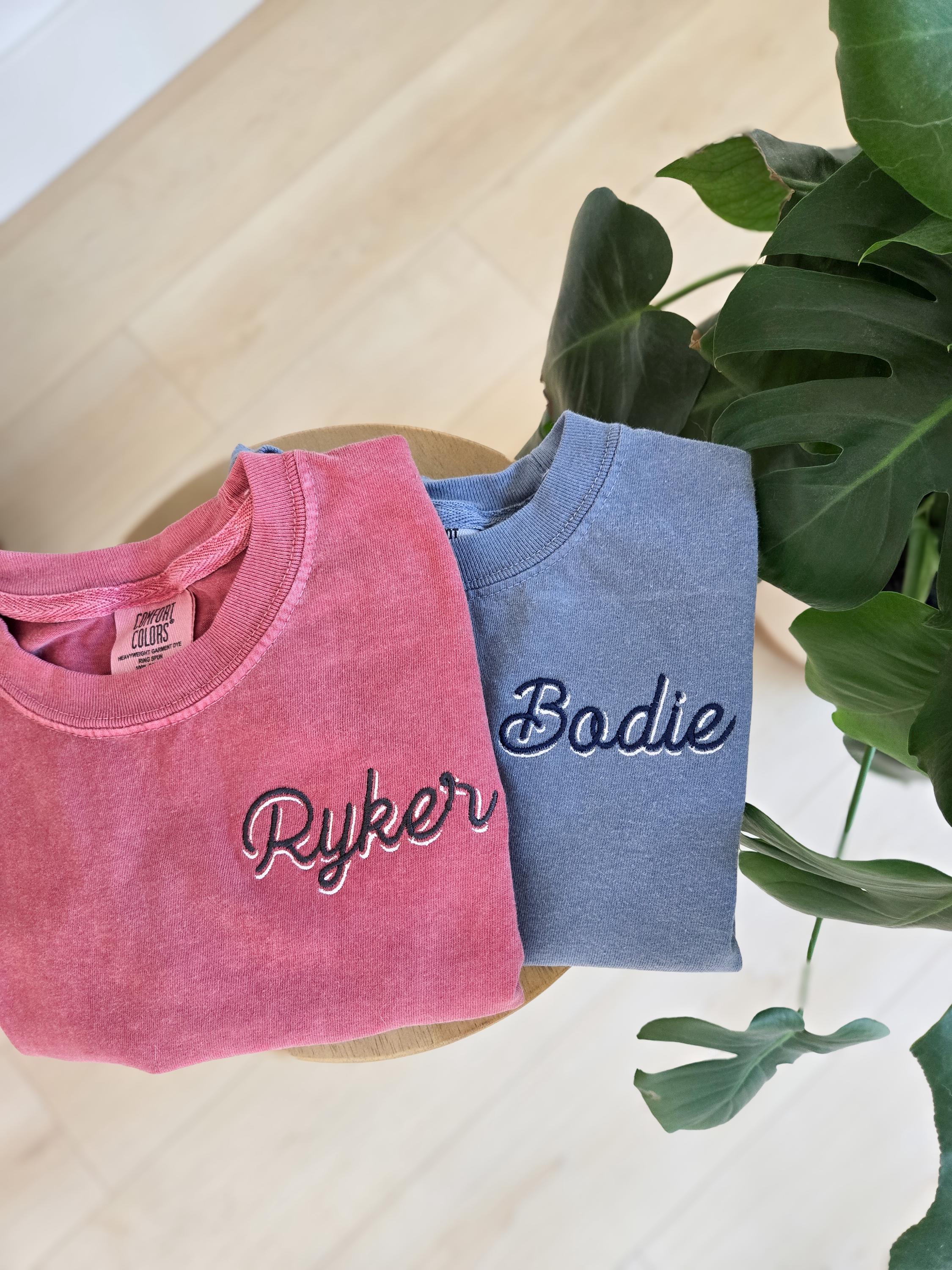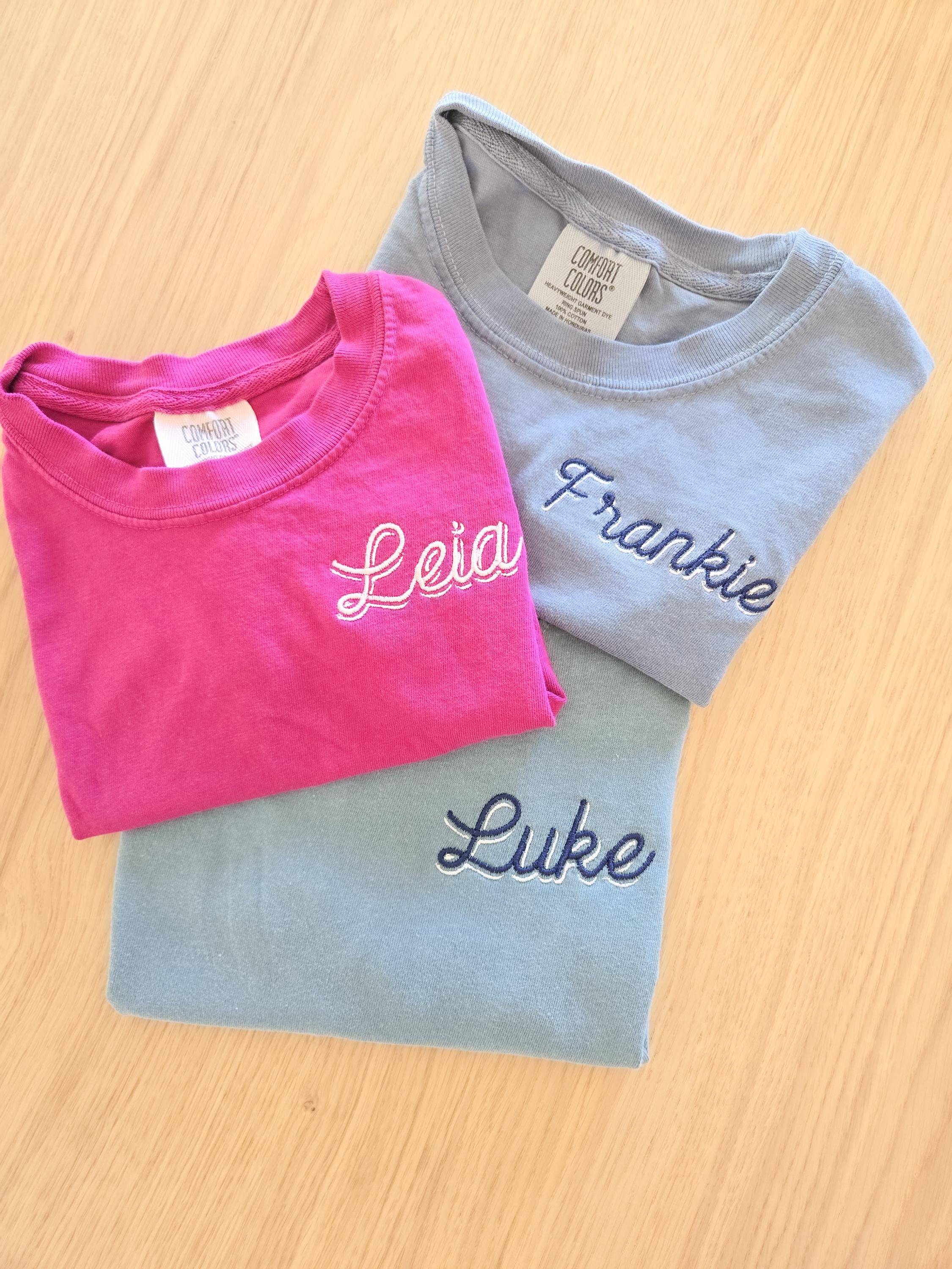 Personalized with a shadow font and refer to photos to choose your thread colors.