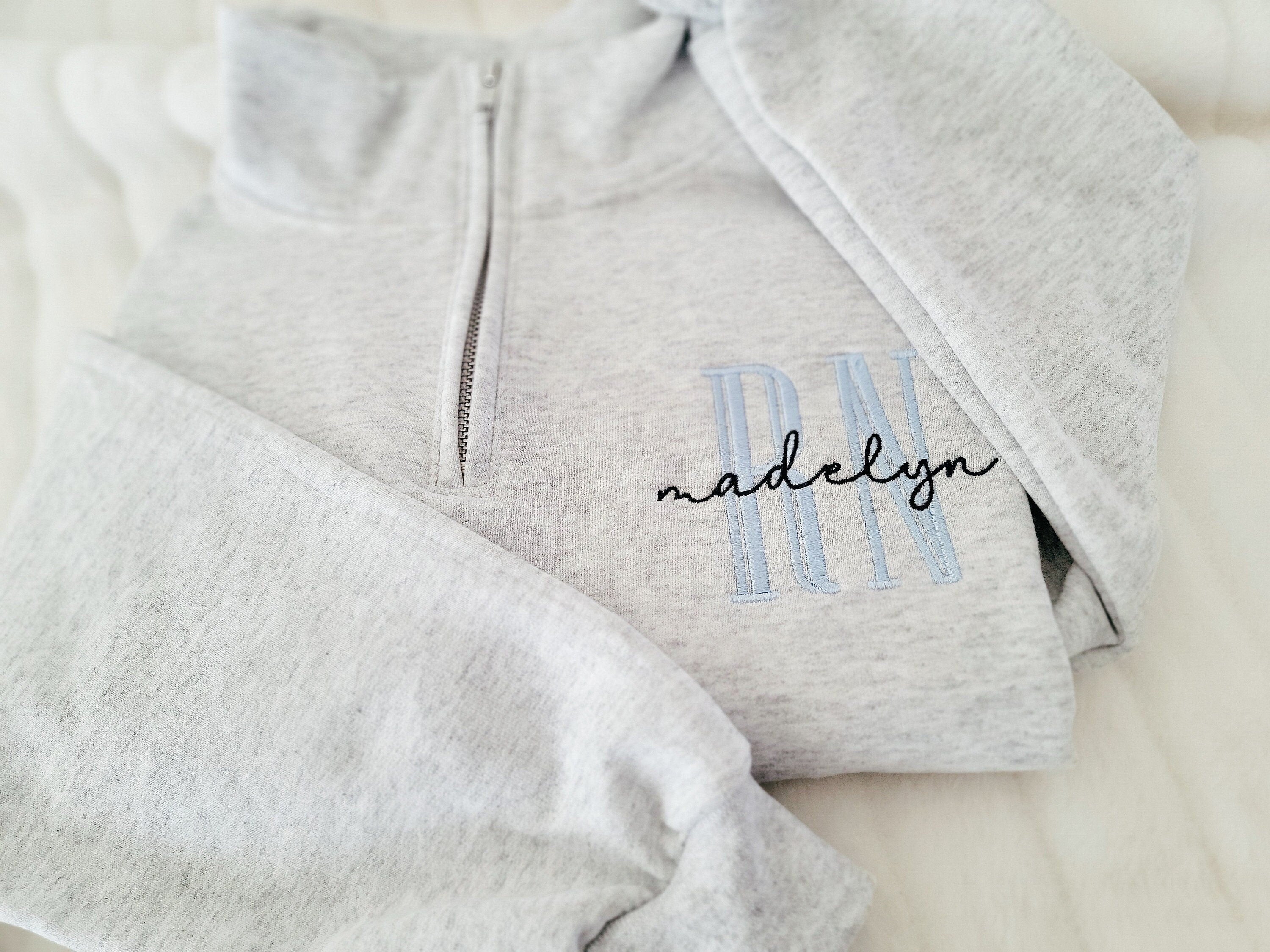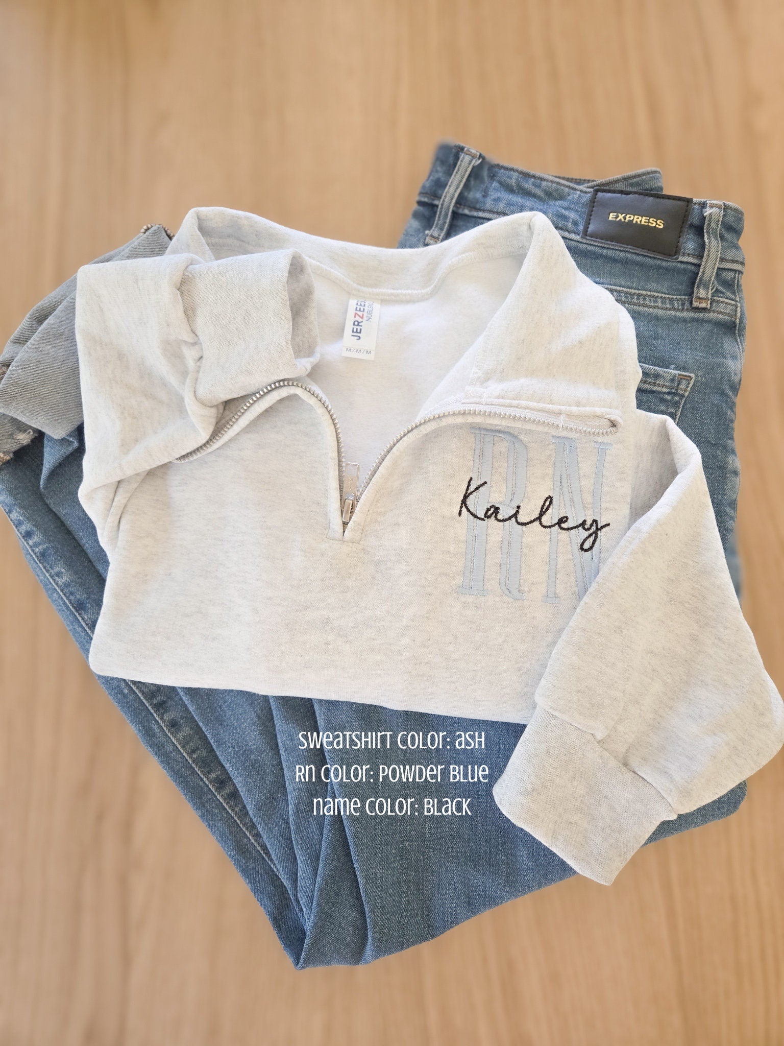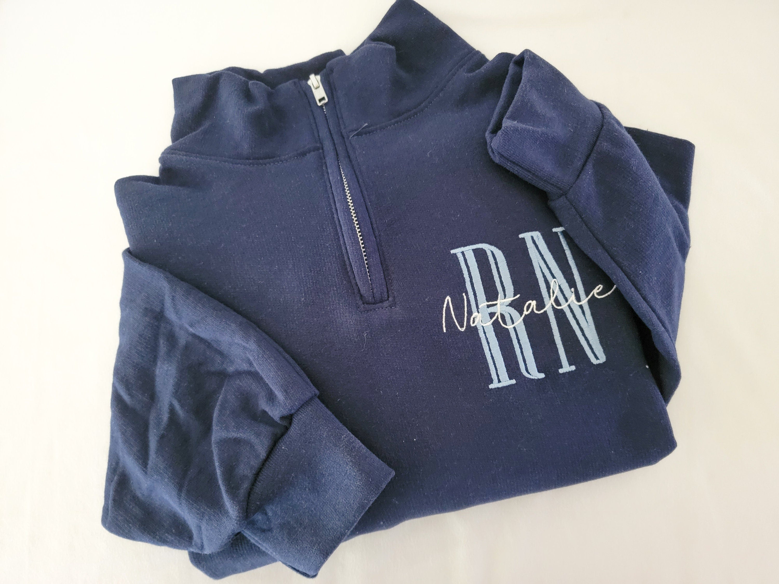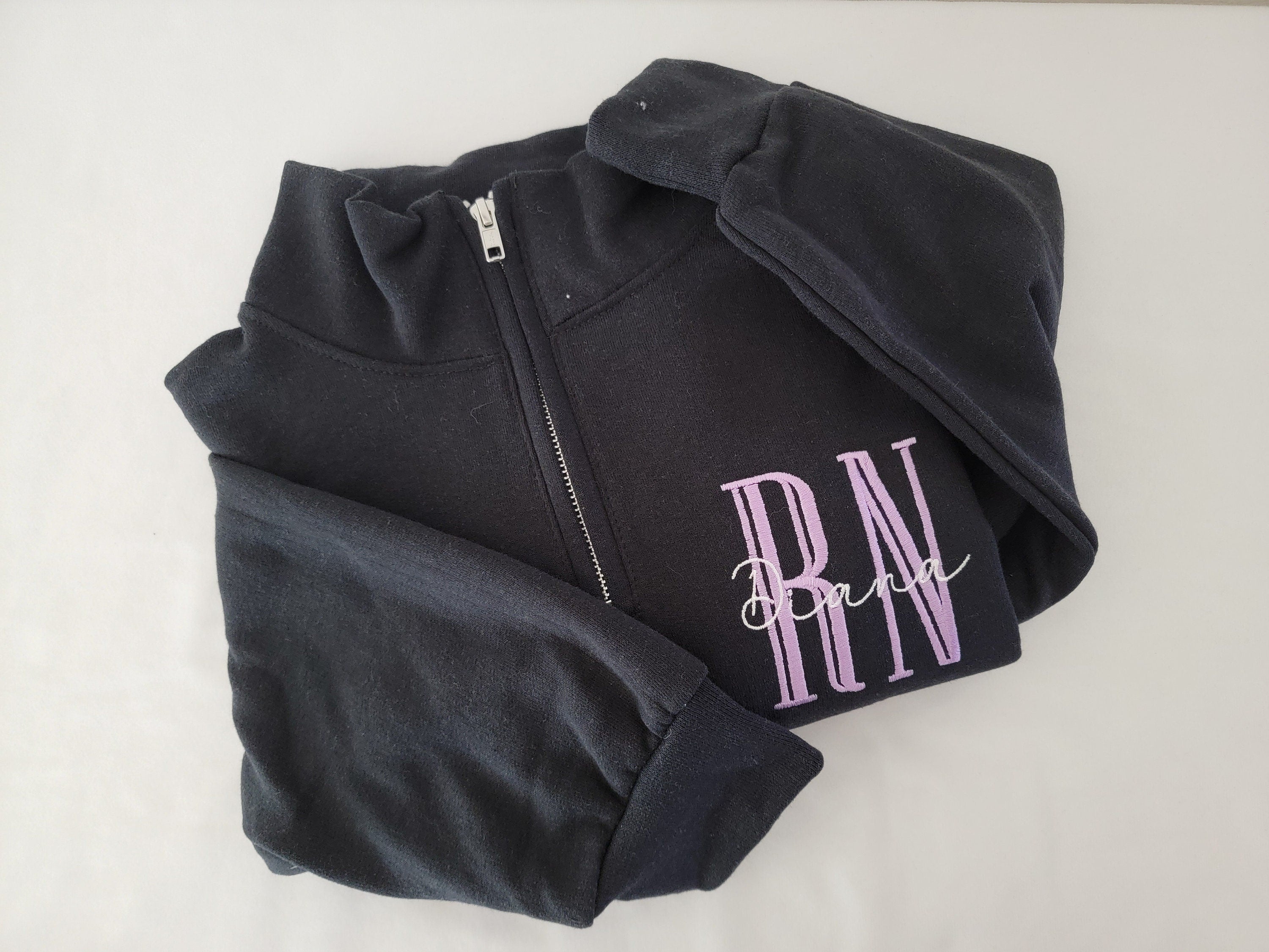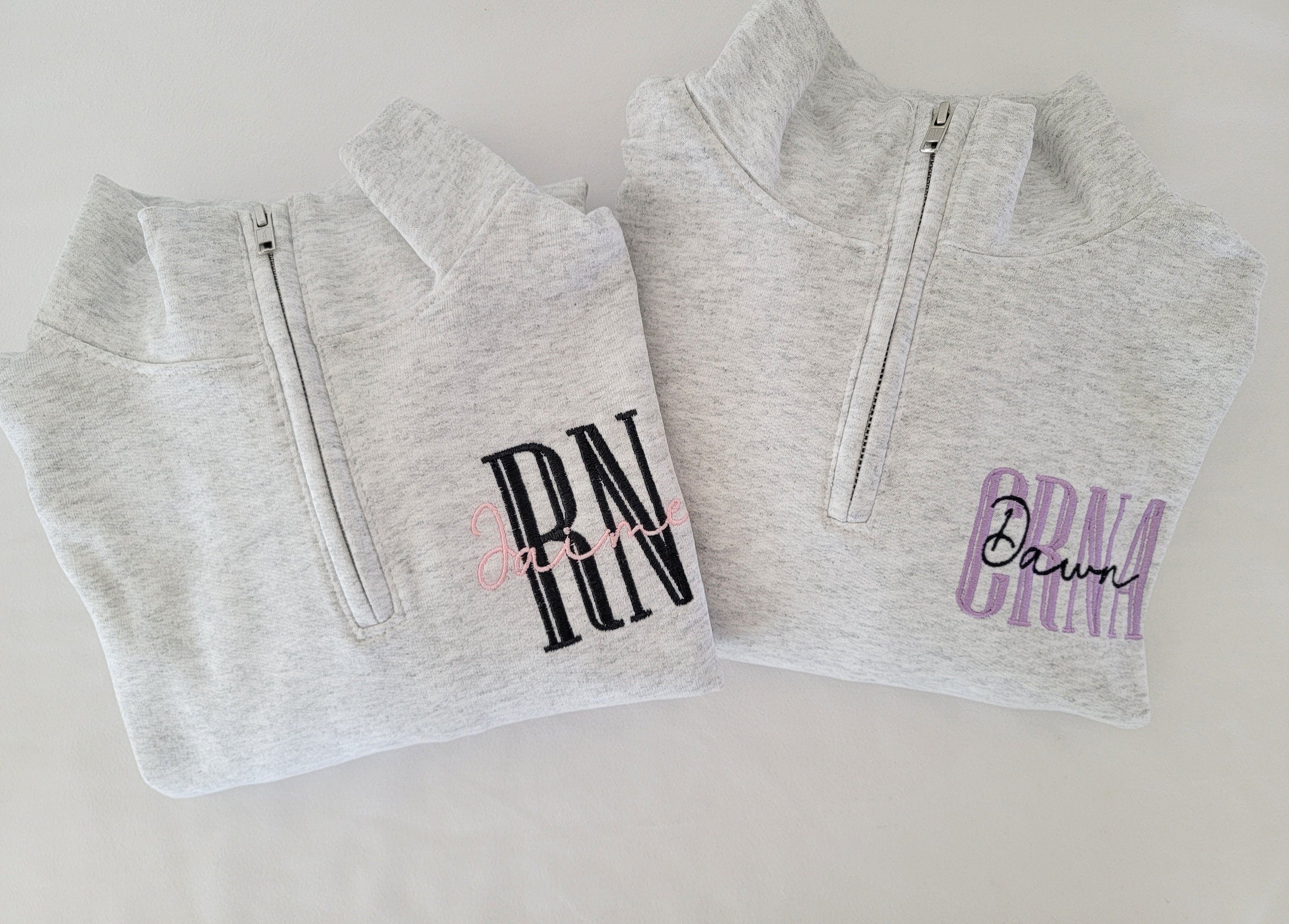Custom Nurse quarter zip sweatshirt. Customize with nursing position and name. Choose from many different thread colors!