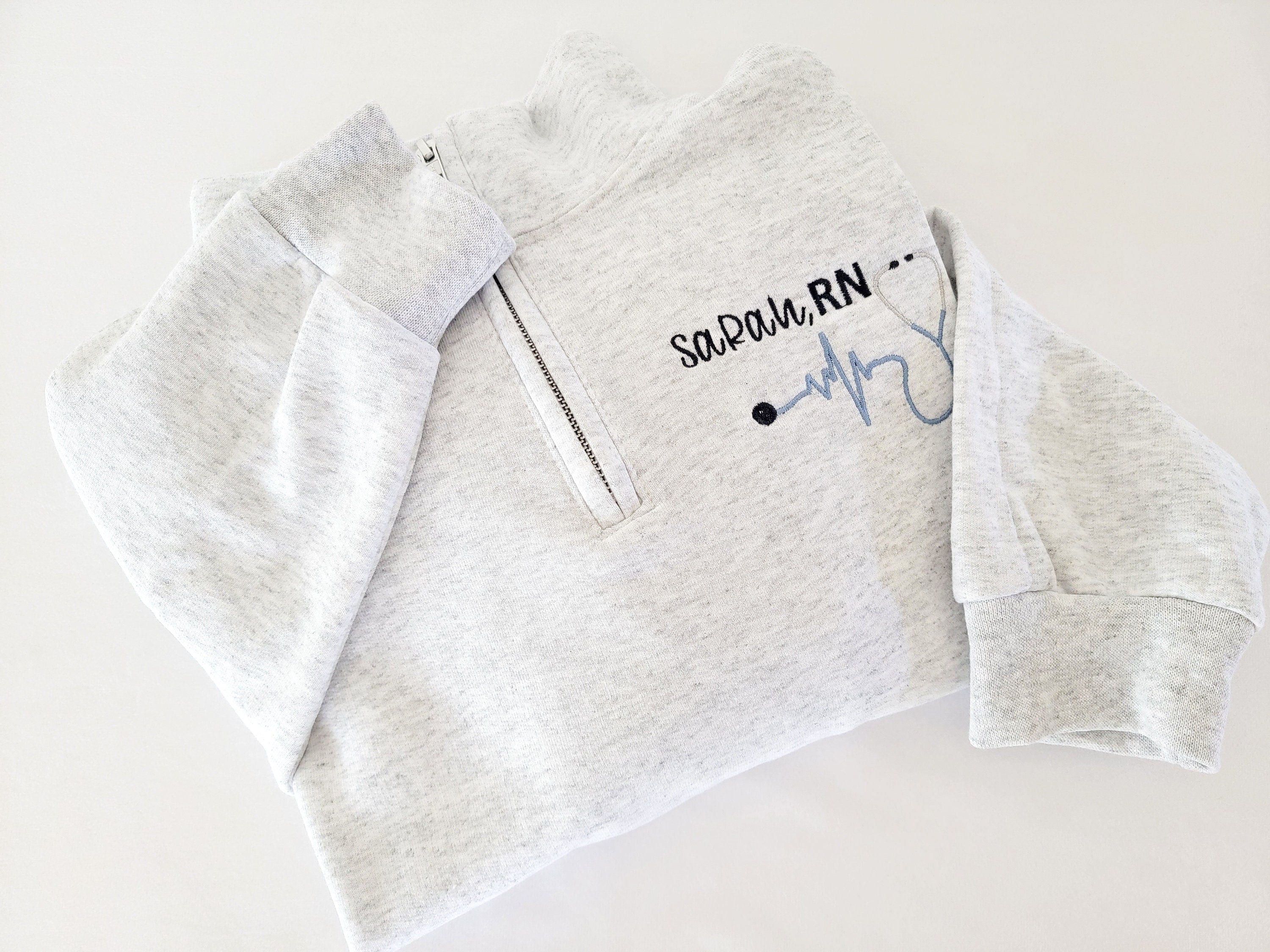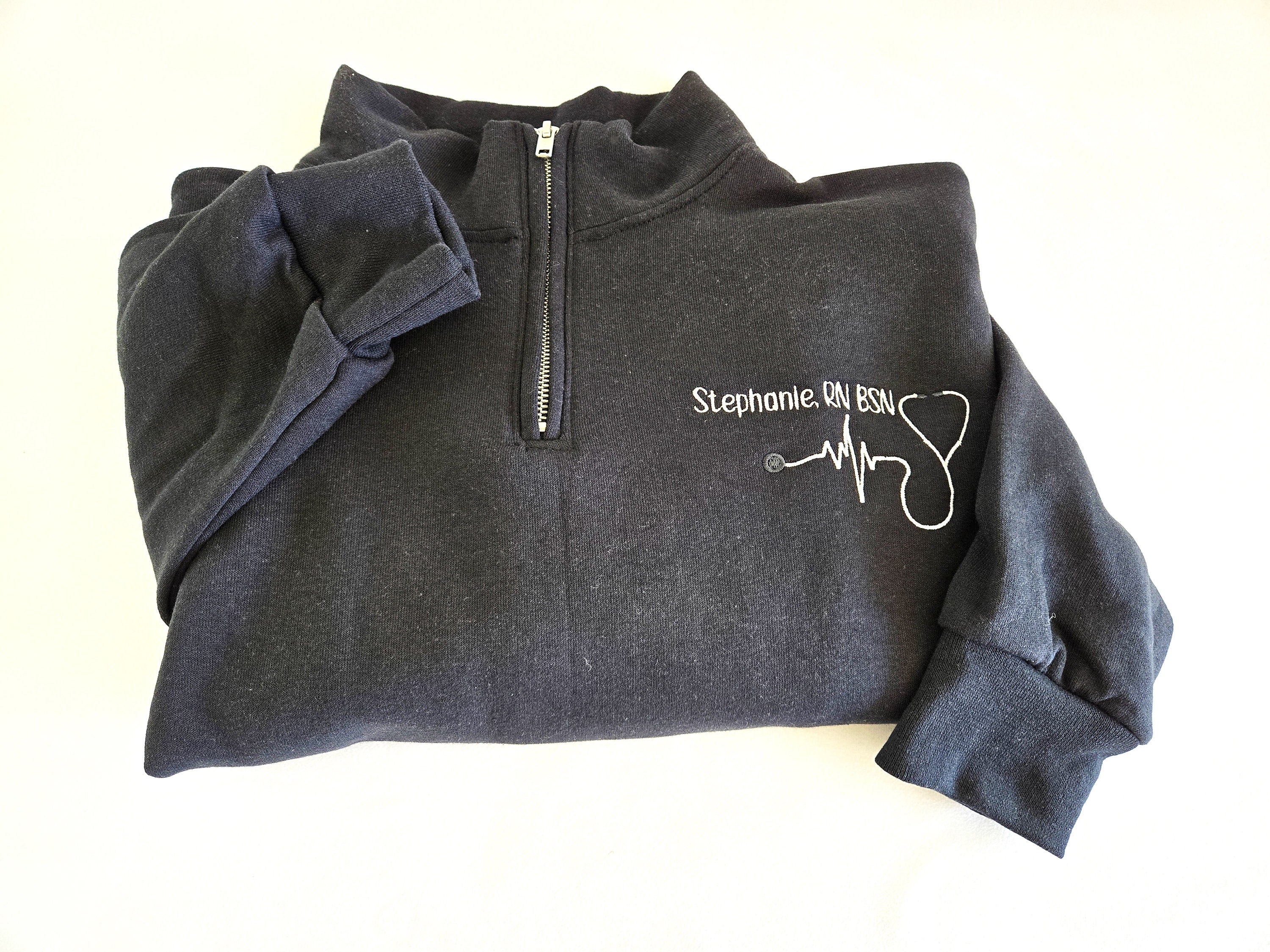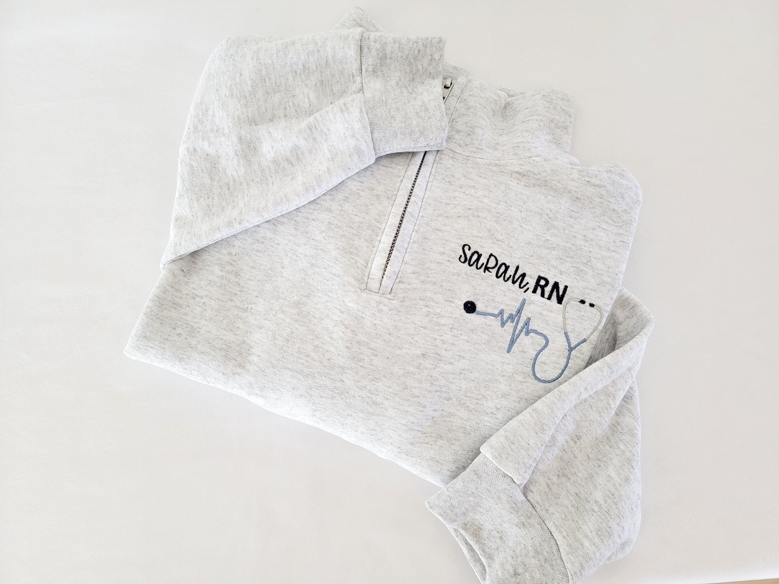 Custom Nurse quarter zip sweatshirt. Fully customize with different fonts and thread colors!