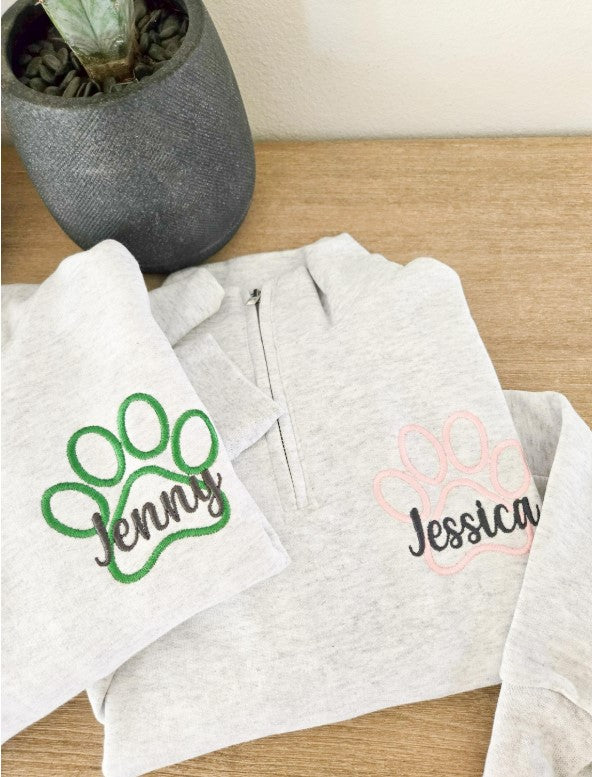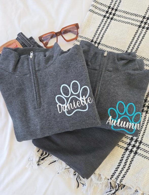 Paw Print Personalized Quarter Zip Sweatshirt