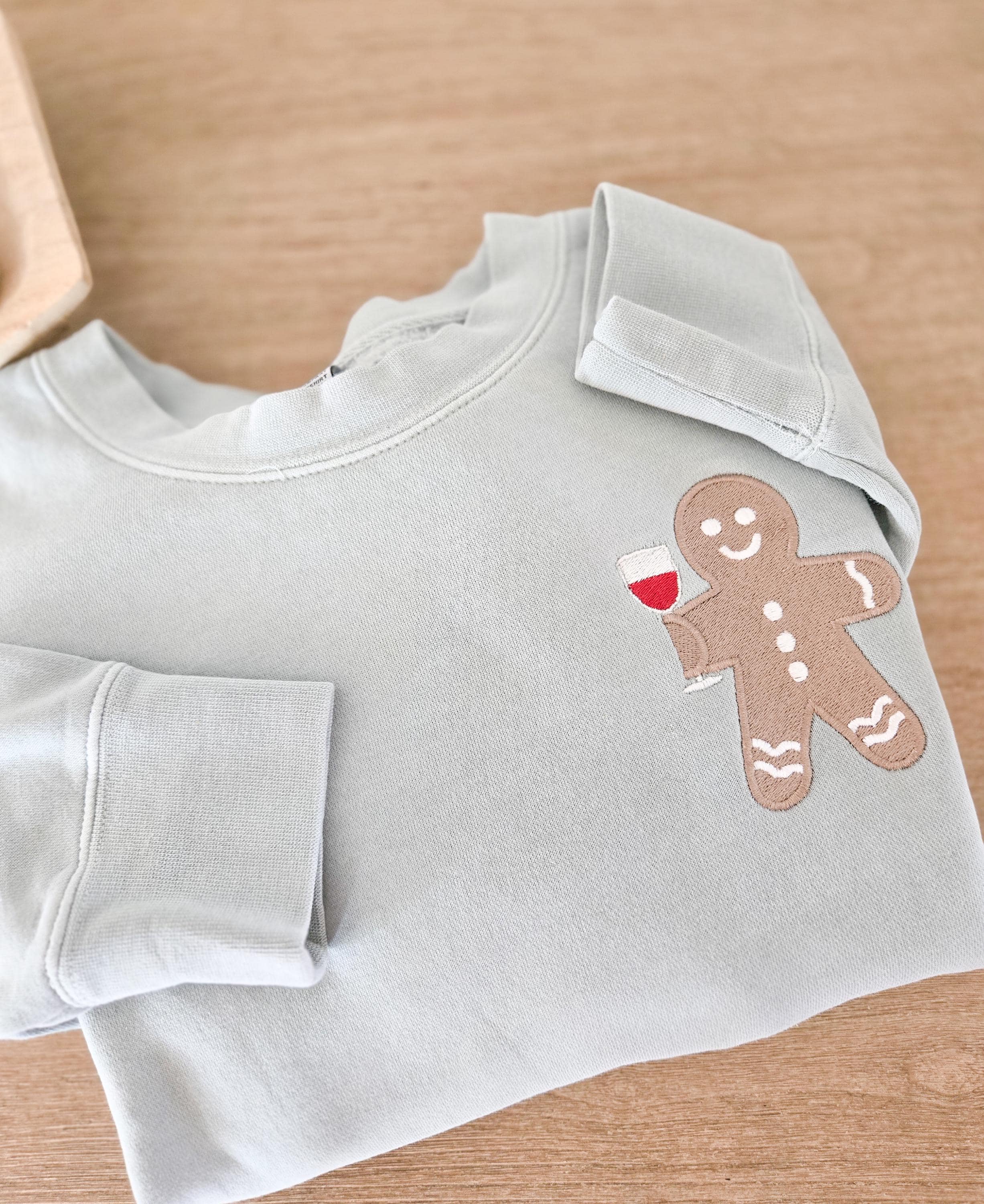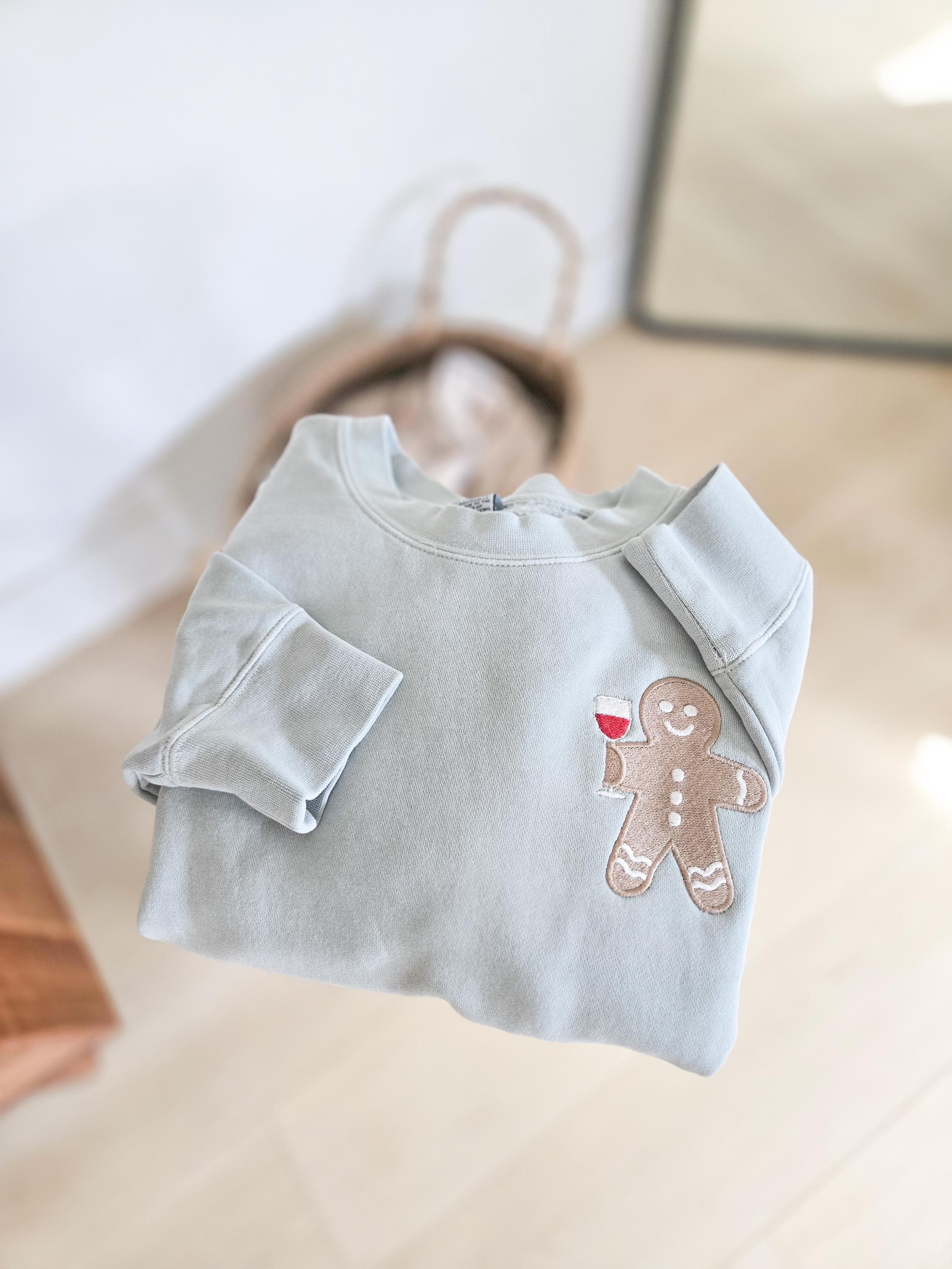 Here is a one of a kind wine drinking gingerbread man sweatshirt! For all those wine lovers out there, here is an adorable christmasy design! Such a cute little gingerbread man with a glass of wine.
